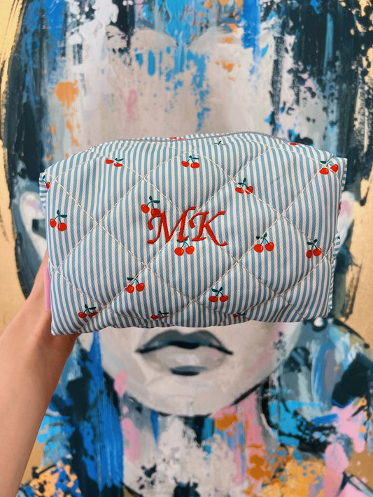 Custom Embroidery Blue Cherry Makeup Bag